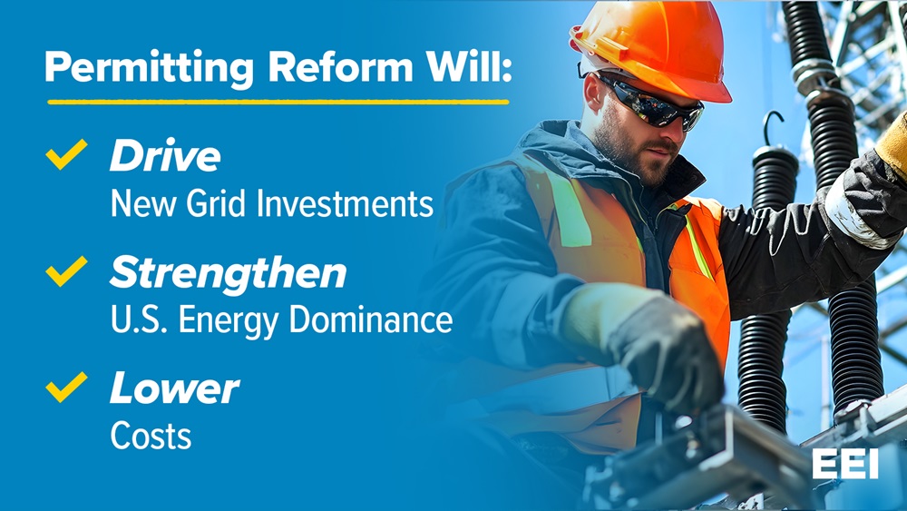 WASHINGTON (September 16, 2025) — Today, Edison Electric Institute (EEI) President and CEO Drew Maloney sent a letter to Congressional leaders urging action on comprehensive permitting reform to accelerate infrastructure deployment that will provide better service to customers, drive economic growth, and strengthen America’s energy dominance.